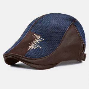 Collrown Men PU Knitted Irregular Patchwork Color Contrast Thick Stitching Casual Beret Flat Cap