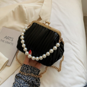 Pleated Shell bag Small Totes With Pearl Handle 2021 Summer New PU Leather Women’s Designer Handbag Chain Shoulder Messenger Bag