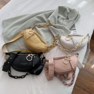 2020 New In Messenger Bag Women Hobos Letter Chains Single Shoulder Chest PU Leather Handbag Wide Straps Day Clutches