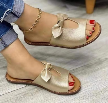 2021 New Summer New Women Leisure Fashion Bow Flat Sandals Sandals Comfortable Soft Bottom Women’s Breathable Beach Sandals