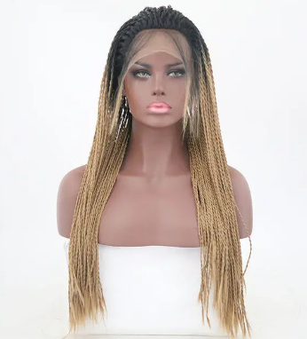 Black Gradient Gold Braided Long Straight Hair Wig Chemical Fiber Front Lace Hair