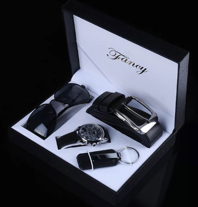 Fashion Watch Men Luxury Gift Set Sunglasses Keychain Top Quality Belt Multiple Time Zone Wrist Watch For Father Men Gift - Discountshub