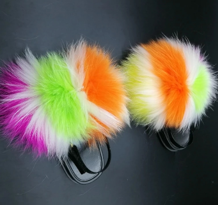 Kid's Heel Strap Sweet Fluffy Fur Sandals Child Home Furry Fur Flat Shoes Toddler Fashion Cute Plush Fur Warm Non-slip Slides - Discountshub