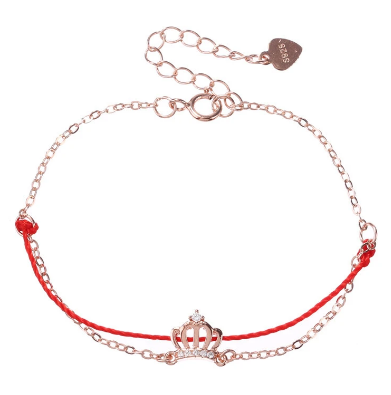 Luxury 925 Sterling Silver Red Rope Lucky Charm Bracelets Zirconia Crown Rose Gold Chain Bracelets