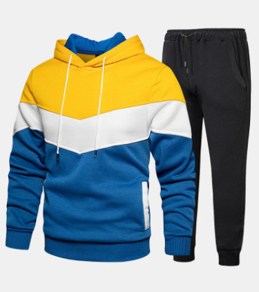 Mens Color Block Stitching Drawstring Hoodie Casual Sports Two Pieces Outfits