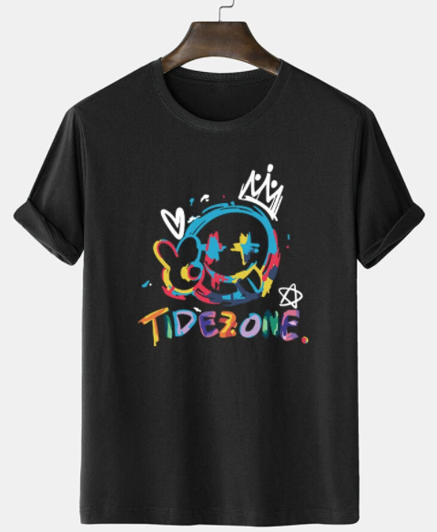 Mens Smile Face Letter Graffiti Print Cotton Short Sleeve T-Shirts