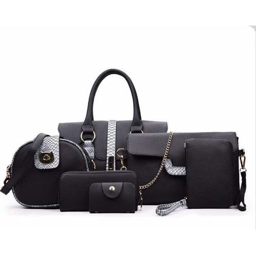 Stylish 6-in-1 Croc Ladies Leather Handbag – Black